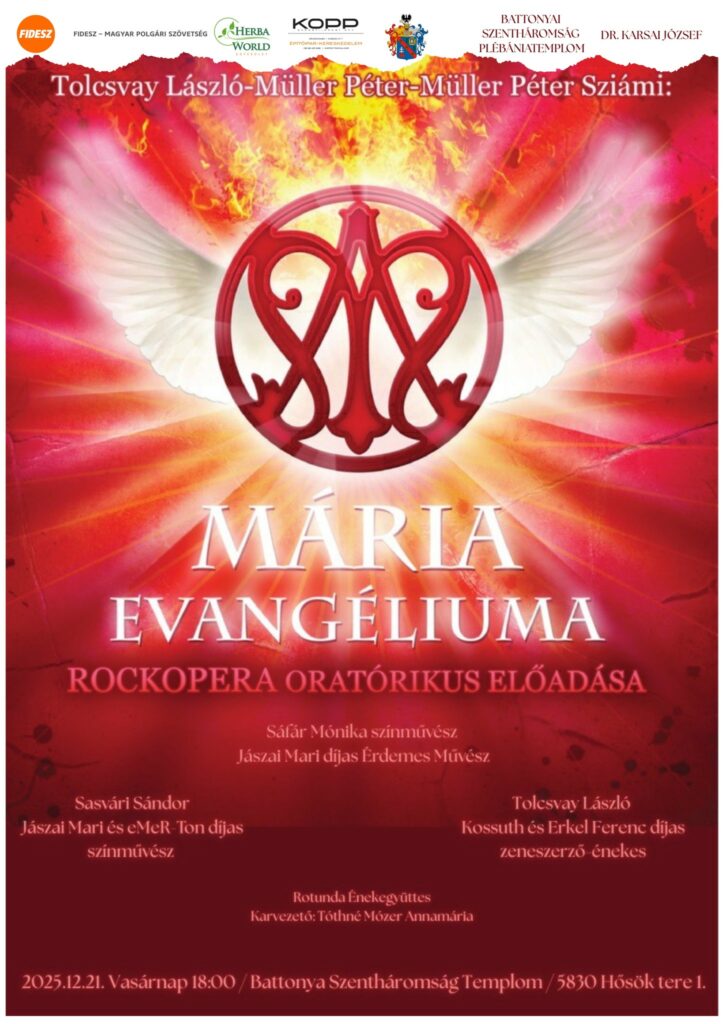 You are here: Home › Battonyai hírek › Rockopera Battonyán ← Különleges ünnepi hangulat Rockopera Battonyán Vasárnap, december 21-én 18.00 órától a Battonyai Szenháromság Templomban kerül sor a Mária Evangéliuma című rockopera oratorikus változatának bemutatójára. Vélemény, hozzászólás? Kilépés a válaszbólAz email címet nem tesszük közzé. A kötelező mezőket * karakterrel jelöltükHozzászólás Név * E-mail cím * Honlap A nevem, email címem, és weboldalcímem mentése a böngészőben a következő hozzászólásomhoz.