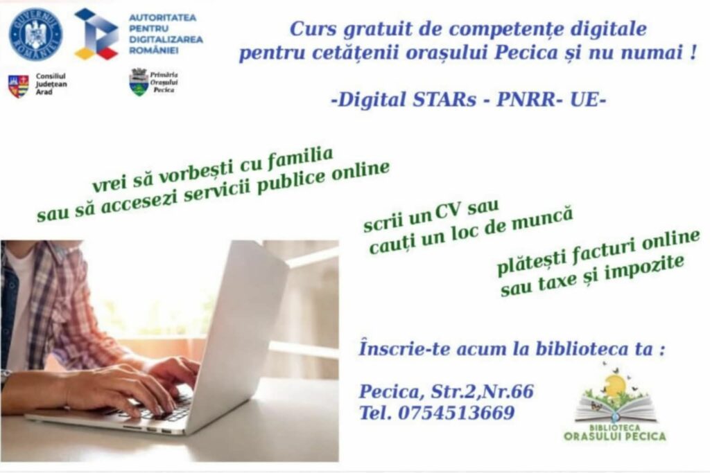 Pécska városa egyike a megye 12 településének, amelyek, az Arad Megyei Tanáccsal közösen, megvalósítják a „Digitális készségek fejlesztése Arad megye könyvtárain belül” című projektet a Nemzeti Helyreállítási és Ellenállóképességi Terv (PNRR) keretében. Ez új ingyenes szolgáltatást kínál a polgároknak, és gondoskodik az érintett könyvtárak informatikai berendezéseinek korszerűsítéséről is. A városi könyvtár így csatlakozott a nemzeti Digital STARs programhoz, amely a Gazdasági, Digitalizációs, Vállalkozási és Turisztikai Minisztérium kezdeményezése és amelyet a Romániai Digitalizációs Hatóság valósít meg a Világbank támogatásával.